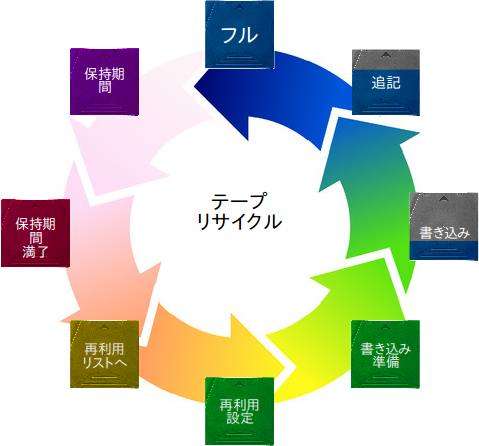プログレッシブ・バックアップのテープのライフサイクルを図式すると以下のようになります。