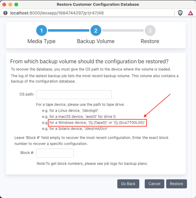 テープドライブのOSパスは\\.\Scsi1T01L01であり、設定リストアのOSパスにはこれをそのまま入れていました。